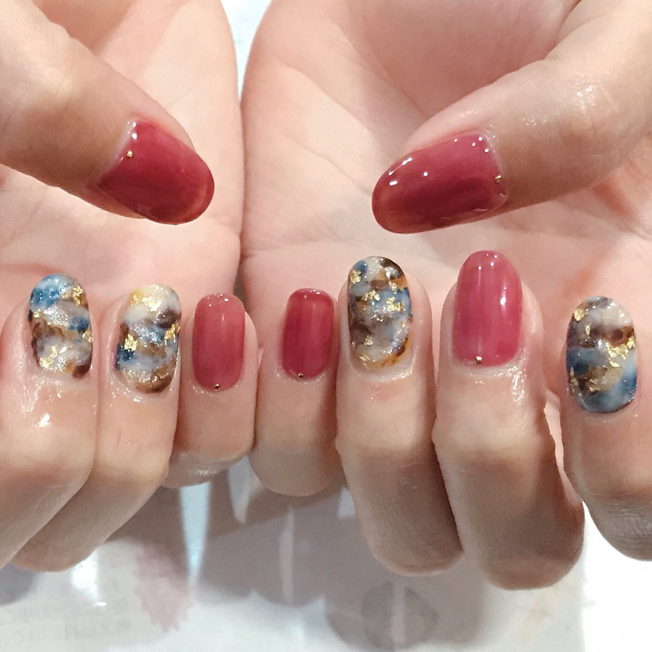 秋先取りカラーの天然石ネイル ボルドーで落ち着いたカラーの天然石ネイル 華やかな印象でカ Ran Nail ランネイル 所属 Ran Nailのネイル デザイン ミニモ